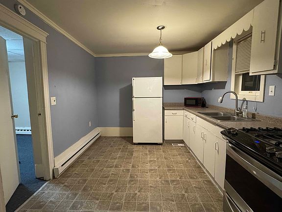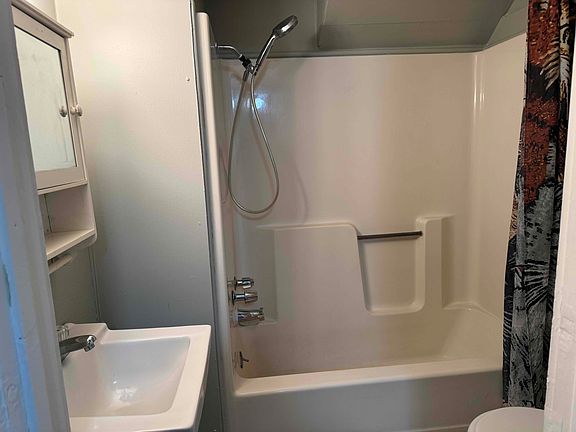 Kitchen with full size stove & fridge. Open floor plan living room/kitchen with ability to mount TV on wall. New carpet in living room. Tub with shower.