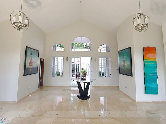 Live in the exclusive Valle Escondido Estates neighborhood of Guaynabo. This imposing property boasts a 1,200-square-meter lot. A dream location with unforgettable views and sunsets. Ideal for those seeking comfort, space, and luxury. Completely remodeled kitchen, elegant marble floors, six inverter air conditioning units, a solar cistern, and a basic 110V solar system. 19-foot-high ceilings, an interior terrace perfect for gatherings and relaxing moments, and a large garage for four vehicles. Pets are not allowed on the property when renting..