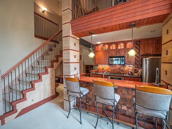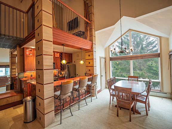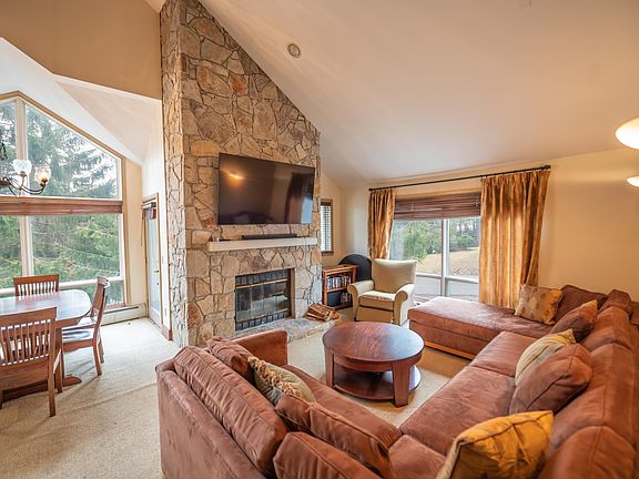 One of a kind opportunity to be trailside at Mount Snow. One of only a few vaulted 2 bedroom units in the trailside Seasons community. This one is special in that it also has an additional loft space for overflow sleeping or entertainment, making it a 2 bedroom, 2 bath, plus loft. Enjoy the large vaulted living space with stone floor to ceiling wood burning fireplace, entry mudroom area with cubbies, open kitchen with breakfast bar, soapstone counters, and custom cabinets and lighting, southern exposure for great natural light, and direct ski trail access. Each unit has a ground floor ski locker to stow your gear, and then you are at the top of the building meaning no units above you, cutting down on noise. There is also a nice deck for enjoying the Vermont scenery, laundry in the unit, and dual suites with upscale updated baths great for privacy with guests. The heating system has been updated recently for more efficiency and longer lasting warm showers after a day on the slopes. The ski trail is directly adjacent to this building for true ski-in/ski-out access and you also get use of the newly updated amenities building with indoor and outdoor pools, full gym, separate owner and tenant hot tub areas, locker rooms, basketball court, wood and trash, and on site management company allowing for downtime, not upkeep. Note that this sale is contingent on the successful close of the Sellers' replacement property already under contract.