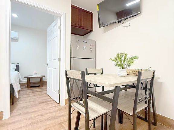Fully furnished including induction stovetop and flat screen TV.