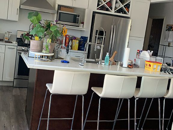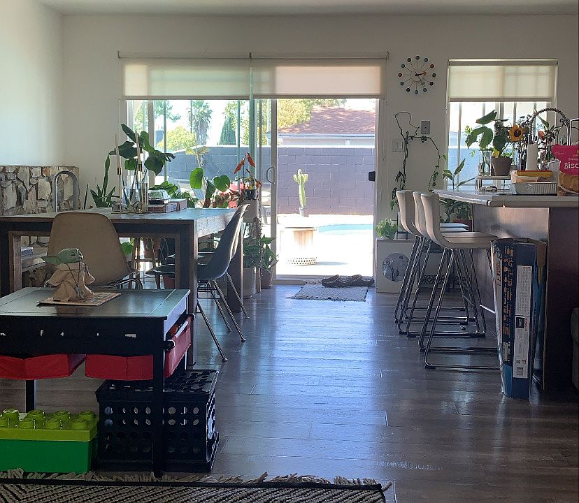 Bright and airy private room with vinyl wood floors w/ shared spacious bathroom. We have a newly renovated open floor plan /kitchen, enclosed courtyard and huge pool in the backyard.