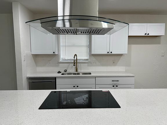 New kitchen layout with marble countertops and electric stove top. Newly installed a/c. Water heater.