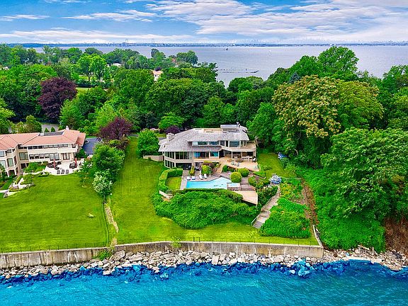 Spectacular custom built contemporary home, situated on well over an acre of waterfront property, located on one of the North Shore of Long Island's most prestigious streets, Gatsby Lane. Walls of glass provide for unobstructed of the Long Island Sound throughout every room of the home. Perfect for entertaining, the house boasts an in-ground pool overlooking the water, multiple decks and terraces, a full-sized wet bar, a billiards room, lookout point and rooftop lounge.