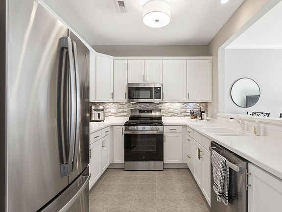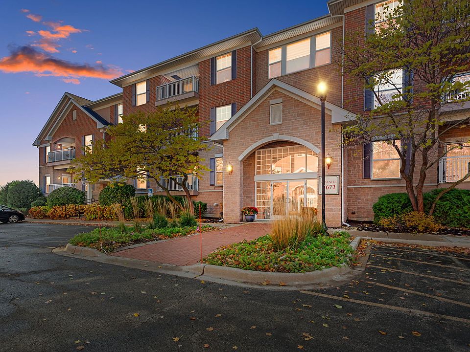 Beautifully maintained 2-bedroom, 2-bath condo in the sought-after 55+ Crossings at Geneva community! This bright and inviting home is filled with amazing natural light and features a stunning kitchen with all brand-new (11/2025) stainless steel appliances including a stove, refrigerator, dishwasher, and microwave, complemented by a stylish backsplash and a pass-through breakfast bar window. Gorgeous 2023 laminate flooring flows seamlessly throughout, and both bedrooms include elegant plantation shutters. The spacious primary suite offers a large bathroom with a soaking tub and separate shower, along with a custom-designed walk-in closet, while the second bedroom features built-in shelving and desk space-perfect as a guest room or home office. Enjoy peaceful, scenic views from your private balcony with no neighboring units behind. Additional highlights include a newer A/C unit (2023), in-unit washer and dryer, secured building entrance, extra storage down the hall, and one heated garage parking space. The Crossings at Geneva provides a true sense of community with a clubhouse for social gatherings, book clubs, coffee hours, holiday parties, and monthly outings, as well as beautifully maintained grounds with a relaxing courtyard. Conveniently located near Northwestern Delnor Hospital, Geneva Commons shopping and dining, and Randall Road. HOA covers water, parking, clubhouse access, exterior maintenance, lawn care, and snow removal. Pet-friendly community-everything about this condo is move-in ready, so don't wait to make this beautiful home yours today!