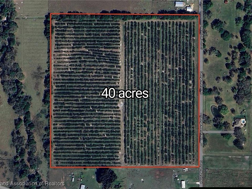 Great location in the Sweetwater Community. The George Marsh Block is a 40 acre citrus grove currently in Early-Mid oranges. It has 1320 feet of frontage on the road. This grove has been well maintained. The irrigation consist of (1) 10 inch well with a 6 cylinder John Deere Power Unit, a 500 gallon fuel tank, and 1 inch poly tubing with micro jets. This property could go multiple directions such as building your dream home or splitting into smaller parcels for multiple homesites. Continue with citrus or utilize this parcel's set up to grow bamboo, row crops, hemp, sod, and a nursery or tree farm.