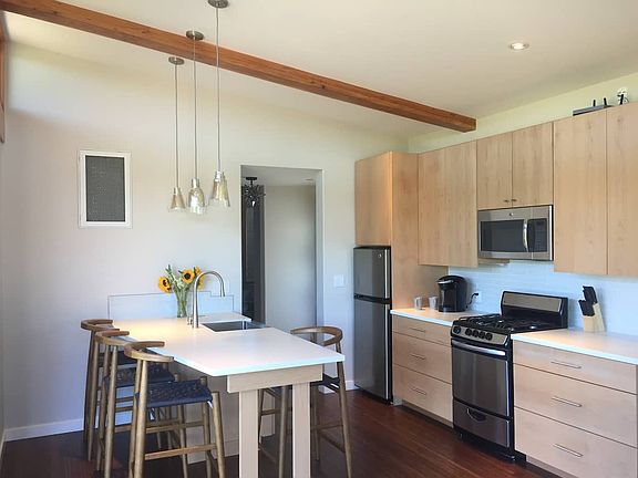 This contemporary and serene guest home sits on 3 acres in Geyserville in a vineyard setting amongst flower and vegetable gardens. There are views of the mountains and vineyards from every room. Washer and dryer are in the home and there is A/C and heat. Every window has a screen and can be opened for fresh air. Access to 101 is only 5 minutes away and there is the convenience to walk into town. The home is fully furnished with a fully stocked kitchen and an open concept living room. The owners live on the property. This is a strictly no smoking/no vaping property. Ideal for 1-2 adults.