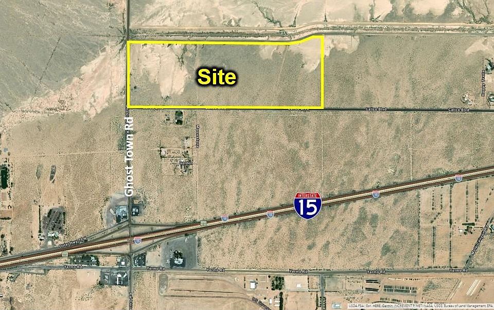 APN'S 0537-032-24, 25 Lot Acreage: 103.02 Acres Zoning: Rural Living -10 Acre Minimum The subject is located a little over 7 miles north of Barstow along I-15. The site is situated east of Ghost Town Road near an established rural residential area and south of Calico Ghost Town. Near by businesses include gas stations, restaurants, Silver Valley High School, USMC Logistics Base, and Fort Irwin Army Training Base.