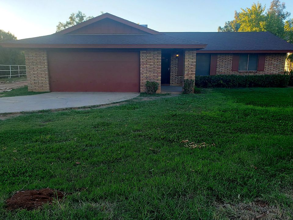 LOCATION: Lindsay and Eliott. What a great opportunity to live in this serene country setting, with shopping and Old Town Gilbert only .5 mile away. This 3 bed 2 ba sits on a large 2 acre lot with no block fence to obstruct the view. The property for rent is the front yard, the back yard is enclosed with a chain link fence and an additional fenced yard directly behind the first and an area along the South side of the home for additional parking. Not the entire 2 acres. The chicken house in the 2nd yard is not for use. But it will be re repainted the same barn red color as the other building and the red brick home. The home has all neutral tile, newer window blinds, updated Master bath , all stainless appliances, smooth top range. Notice the elegant Solid Wood doors and baseboards. Kitchen has tons of cabinet storage space and a Large breakfast bar. Large master bedroom has a walk in closet and built in shelves. In addition there is a linen closet in the Master. Bedroom 2 has a built in desk and 2 closets. Washer and dryer are included. The garage is oversized with a lot of extra space for storage. Tenant is responsible for all lawn care. Irrigation water paid for by the owner if tenant wants to do irrigation. At the time of these photos my Landscapers have not completed the yard. Gravel will be added to the South side yard for additional parking. Lawn will be cut & edged. Photos of the front & back yard will be updated when the work is completed shortly.
