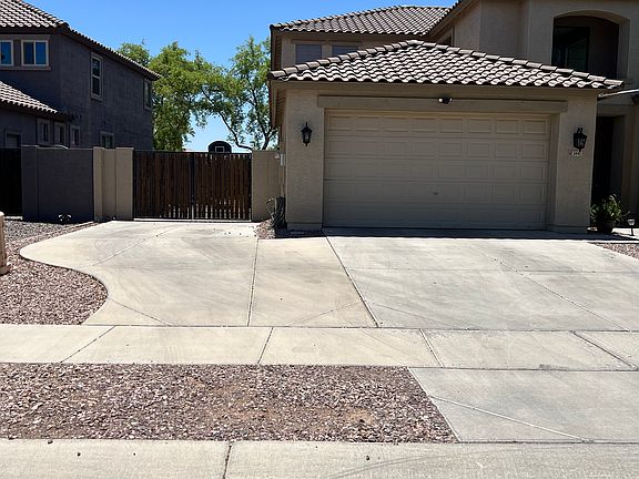 Enjoy Arizona living in your private backyard oasis with a sparkling pool, covered patio, and additional cement pad behind the RV gate; ideal for toys, storage, or a basketball hoop. The epoxy-finished 3-car garage includes a side access door for added convenience.