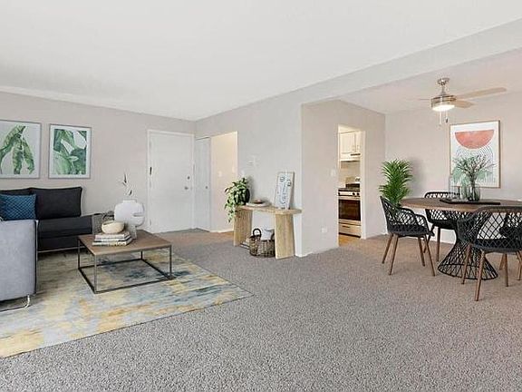 Spacious 1-bedroom, 1-bath apartment with open-concept living/dining, galley kitchen, and ample storage. Features include carpet & hardwood floors, A/C, walk-in closet, dishwasher, and more.