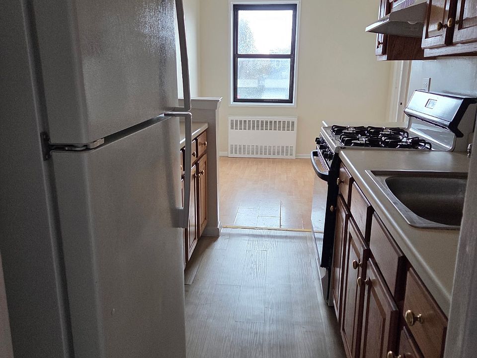 Large 1 bedroom, junior 4 ,freshly painted, hardwood floors , located on the 2nd floor of an elevated apartment building in a well maintained building .