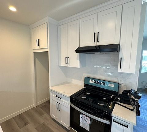 Kitchen: quartz countertops, new gas stove, new cabinets. Separate dining area.