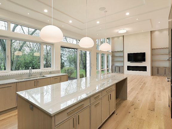 Welcome to 625 Wissing Lane in Glenview -a stunning custom-built contemporary residence on a private cul-de-sac that exemplifies the pinnacle of luxury living. This exquisite new construction features 5 bedrooms, 5.1 baths, first floor office and an expansive 5,309 sq. feet designed to offer both sophistication and comfort. Step inside to discover a meticulously designed open floor plan highlighted by 9 -16-foot ceilings and 7-inch engineered White Oak hardwood floors throughout. Impressive great room with 16-foot vaulted ceiling and floor-to-ceiling windows that flood the space with natural light and offer serene views of the landscaped yard and gardens. Anchoring this space is a 72-inch modern linear gas fireplace, surrounded by custom built-ins and a 75-inch smart TV with a premium sound system. The kitchen adds a grand touch to the stunning professional kitchen, featuring an oversized island, sleek floor-to-ceiling cabinetry with serving counter and Thermador Professional appliances including built-in refrigerator and freezer columns. A spacious walk-in pantry and ample counter space perfect for seamless entertaining. The first floor offers versatility with a bright office featuring a wall of windows, smart pre-wiring for data and speakers in addition to a first-floor bedroom complete with its own full bath. Retreat to the serene master suite on the second floor with dual sinks, separate 8-foot shower with rain/jet system, free standing tub, heated floors including the shower base, beautiful cabinetry and an expansive walk-in closet. Second floor also features 3 additional bedrooms, hall bath, jack and jill bath, and a convenient laundry room with laundry sink and cabinetry plus a loft overlooking the great room. The lower level expands your living options with a spacious recreation room, exercise room, an extra bedroom, full bath, wet bar, and ample storage, all finished with stylish vinyl White Oak flooring. The outdoor space is a private retreat with a natural gas grill cooks center and integrated speakers for entertaining. Additional conveniences include a two-car heated garage pre-wired for an electric vehicle. Throughout the home, experience the ease of a smart wiring system, controlled via a wall-mounted, removable iPad, managing dimmer switches, Nest thermostats, TV, speakers, security cameras and Spotify music. Discover a perfect blend of modern elegance and comfort, offering an unparalleled living experience. Here's your rare opportunity to own a one-of-a-kind custom home where refined design meets exceptional comfort.