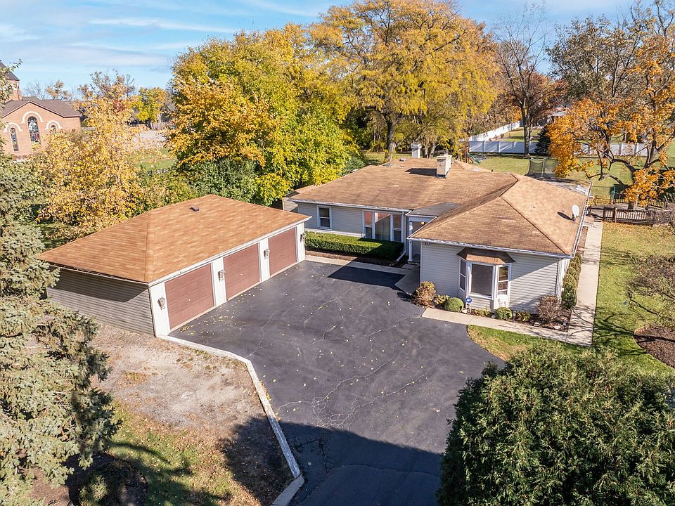 Attention Builders, Contractors, and Remodelers! Don't miss this incredible opportunity to build or remodel on over half an acre in an area surrounded by new construction-all within the highly sought-after School Districts 34 and 225. Set back from the street for total privacy, this property offers a detached three-car garage plus ample guest parking. Step inside and be amazed by the spacious interior, featuring three bedrooms and two full baths. The main bedroom is exceptionally large, providing plenty of room for a sitting area or future ensuite expansion. Enjoy two cozy fireplaces-one in the living room and another in the family room, which opens to the dining area. Outside, the chain-link fenced area is great for pets, but note that the property extends all the way back to the white fence, offering even more outdoor space and potential. Exclusions: Stainless steel refrigerator in the kitchen, washer/dryer, and wood playset in the yard. Inclusions: Refrigerator in the sunroom. Optional: Seller is willing to leave the trampoline if desired-please specify in the contract if you'd like it included. Property sold As Is.