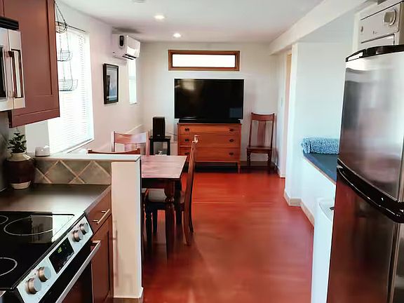 Enjoy peace of mind with a comprehensive security system and the convenience of modern amenities, including a fully equipped kitchen, washer, dryer, and dishwasher. The apartment is fully furnished, and includes a comfortable queen-size bed, a stylish living area with a couch and TV, and all essential furniture!