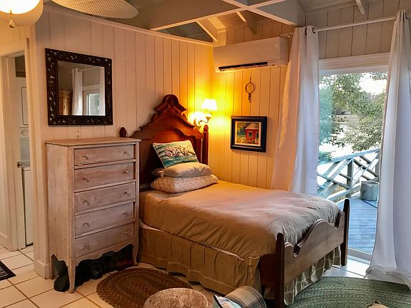 If ever you wanted to live simply in a peaceful spot on the water, here's your own coastal tiny house getaway! This is a furnished vacation rental we have decided to make available for a great monthly rate which includes utilities. Pet possible. Bring your kayak or bicycle and enjoy this beautiful creekside spot. When inquiring ask for "Captains Choice" cottage.