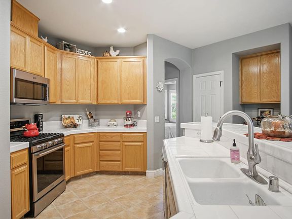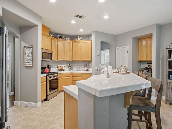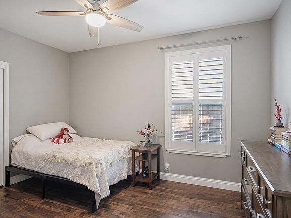 Welcome to this stunning single-level, open-concept home featuring 4 bedrooms and 2 bathrooms. The spacious kitchen boasts an island bar, seamlessly flowing into the family room complete with a cozy gas fireplace. High ceilings, dual-pane windows, ceiling fans, and plantation shutters add comfort and style throughout. The primary suite offers private access to the backyard patio, along with a spacious bathroom and custom walk-in closet. The backyard is an entertainer's paradise, featuring a full outdoor kitchen with granite bar, stainless steel cabinets, BBQ, paver patio, ceiling fan, and mounted flat-screen TV, perfect for hosting gatherings year-round. Additional highlights include front and back automatic sprinklers, an inside laundry room, and thoughtful updates throughout. Truly a must-see home that combines comfort, style, and functionality.