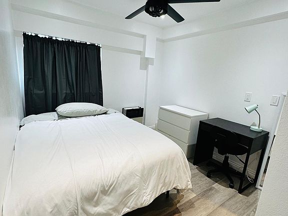 This studio is able to comfortably accommodate 2 individuals and is within walking and biking distance to public transport, beach, and parks. Less than a 5 minute drive from shopping center, restaurants and only a 10 minute drive or bike ride to UCSB and 15 minute drive to SBCC. Completely furnished with private entrance, semi-private furnished patio, plenty of street parking, laminate flooring throughout, granite countertops, and new appliances, dishwasher, refrigerator with water, freezer with ice. Each bedroom features a desk with a lamp, desk chair, heater, ceiling fan, closet, and a small dresser anda full size bed. No pets allowed or considered.