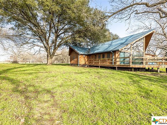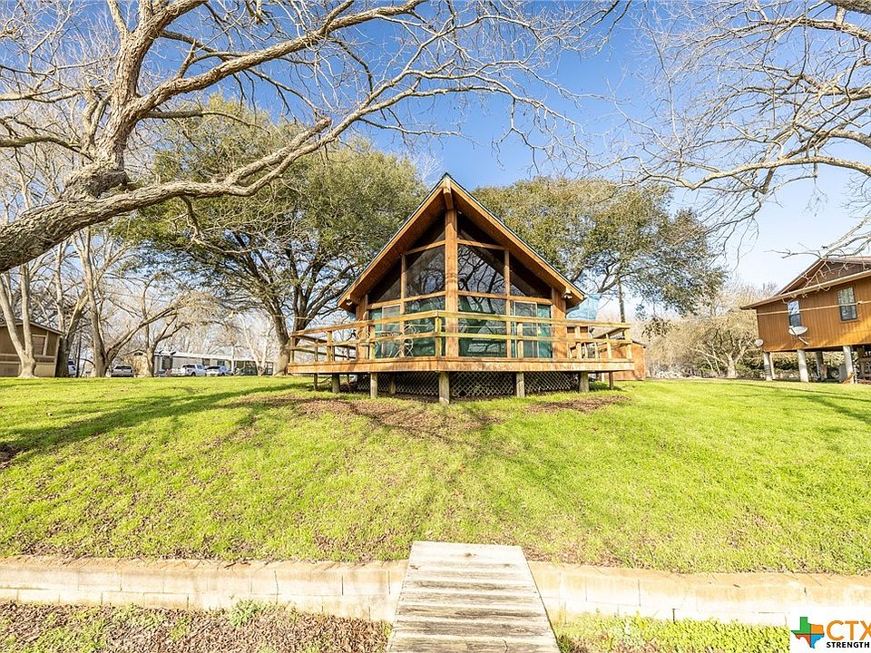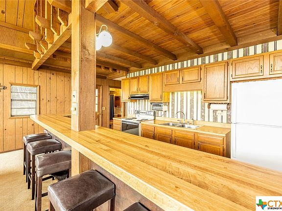 This very unique designed home utilizes space for your enjoyment and entertaining your guests. This four bedroom two bath home opens to a large kitchen with dining bar. The spacious living room has a great view through large windows. Vintage spiral stairway leading to an upper loft is very appealing for a game room or extra bedroom. Enjoy your time on the wooden deck overlooking the large yard with mature pecan trees. Located minutes from town.