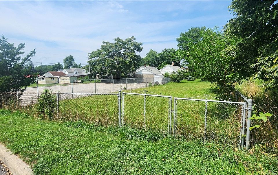 Garfield Heights residential buildable lot for sale to build home. Currently 3 sides of lot is fenced in this is to the right of gravel parking lot and their are large train car wheels to the left of the property.