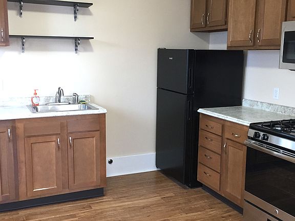One year lease and then month to month after the first year. Access to basement with extra storage and coin-operated washer and dryer.