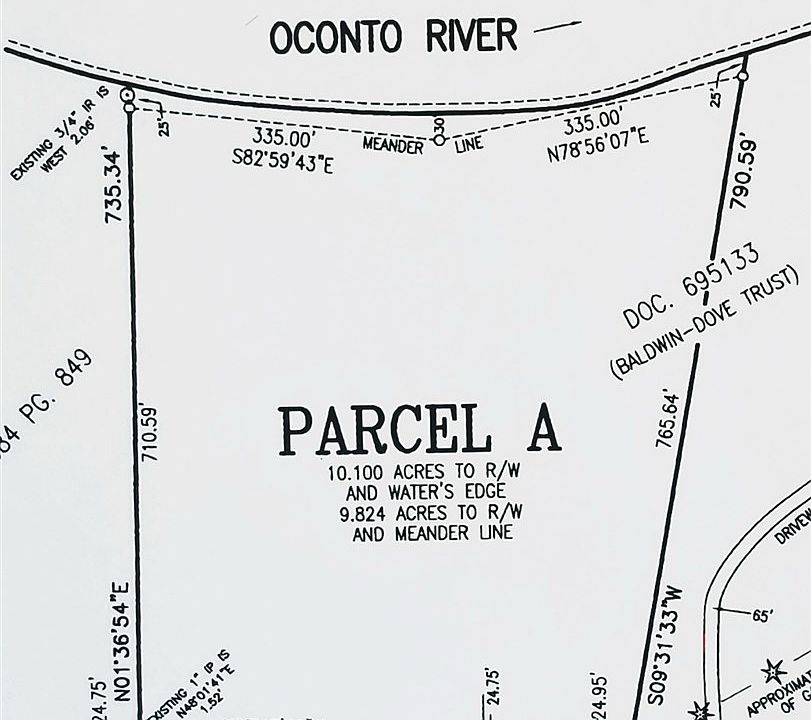 Beautiful 10 acre wooded lot with approximately 670' of Oconto River frontage. Lot was recently split from another parcel, surveyed and information sent to Oconto City Zoning to be recorded. Parcel number will be issued by Oconto County and legal description assigned. Zoning to be established at later date.