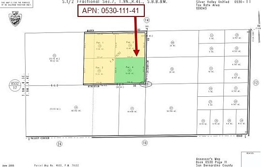 10.66 Acres (APN: 0530-111-41) GPS: 34.883588, -116.600005 This 10-acre property is located along Atherton Drive in the quiet desert community of Newberry Springs, San Bernardino County. This property is zoned both Rural Living- 5 Ac Minimum (RL-5) and Rural Commercial (CR), offering exceptional versatility. RL zoning supports residential uses such as single-family or manufactured homes, agriculture, animal keeping, agritourism, and the potential to subdivide into 5-acre parcels. CR zoning expands opportunities to include retail, lodging, repair services, recreation, and entertainment uses, with housing density of up to 2 units per acre in the desert region. Both zones allow renewable energy facilities, making this property attractive for a wide range of residential, commercial, and investment possibilities. Utilities in the area include overhead electricity approximately 1340 ft south along Valley Center Rd., with residents relying on private water wells, septic systems, and propane tanks for their utility needs. This property does not yet have an address, the address listed is for marketing purposes only. While the boundary lines on the map offer a glimpse, they are only approximate. A Buyer should verify boundaries, zoning and utilities, ensuring every aspect aligns with their vision for the property. ADJACENT PARCELS AVAILABLE. (APN: 0530-111-41) GPS: 34.883588, -116.600005