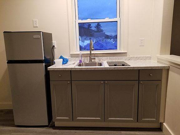 Extended studio on Greenwood Lake...renovated, modern apartment with new lighting, floors, walls, refrigerator, kitchen cabinets and induction burners for cooking. The kitchen area has the space to include a small table and chairs.