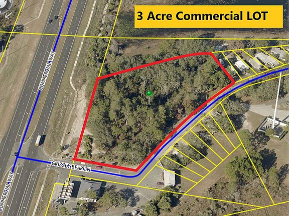 3 acres of commercial real estate land ready for new owner. Prime location for your business needs. located right off commercial way and Grizzly Bear Ln. Marathon gas station to right of lot with RV Camp resort located in rear. Feel free to go by and see. Please contact if interested. 813-435-0836