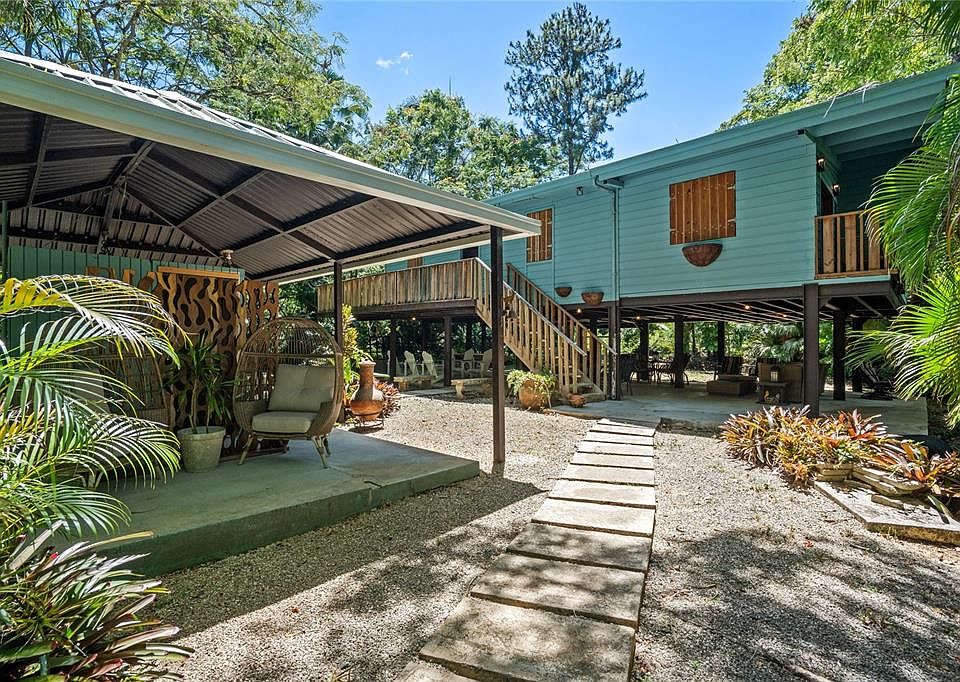 This rare opportunity combines tranquility and potential. Nestled in nature, this secluded lakehouse is perfect for a private retreat or investment. Accessed through a gated entrance, you'll be greeted by beautiful garden sculptures and pristine landscaping, ensuring both security and privacy. The main house, situated directly on the lake, is surrounded by lush native flora and fauna, including tropical birds and turtles. The spacious lower-floor terrace is ideal for gatherings, featuring a full bar, grill, and restrooms—perfect for entertaining. The elevated home includes two bedrooms and two bathrooms. The master suite boasts floor-to-ceiling glass walls, framing breathtaking views of the surrounding landscape. The charming kitchen is fully equipped with modern essentials, while the cozy living area invites relaxation. Step outside to the all-around balcony, where you can unwind, enjoy the fresh air, and immerse yourself in the serene natural surroundings. This property is move-in ready or can be used to generate income. With endless potential for development, the expansive grounds are perfect for an eco-tourism retreat, spiritual sanctuary, or agricultural venture. There’s ample space for farming or adding additional units. Plot plans are available for a guest house, outdoor kitchen, and dock, allowing for further customization and expansion. Take a stroll, connect with nature, and imagine all that this extraordinary property can become.