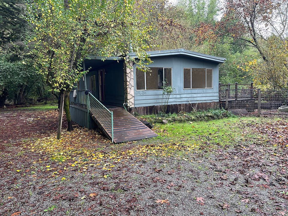 Total privacy with creekside setting . Large back deck. Property is fenced and gated with 1/4 level acre. Comes with new washer, new dryer, new refrigerator, new cook top, along with hardwood flooring. great for anyone with a green thumb plenty of room for gardening and lots of great storage space on property. free standing propane stove/fire place for heating along with small heaters in bedrooms. Cats, small-medium dogs ok bigger dogs negotiable . Off street parking available . No smoking. no weed usage or growing. Manufactured home.