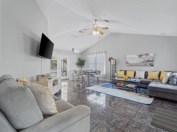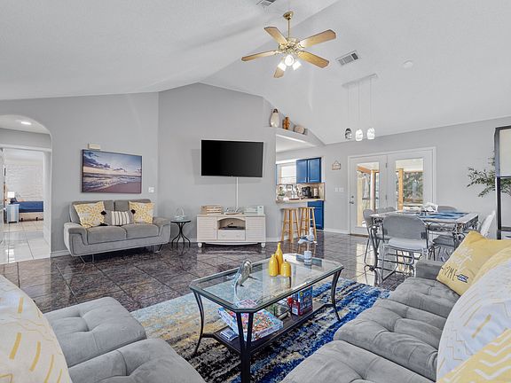 Utilities included! FULLY FURNISHED! This beautiful 3 beds 2 baths rambler is fully furnished and a mile from the nearest public boat ramp. Bring your boat, RV, or other toys. Home has two detached garages/workshops that are wired with electricity. Fully furnished with everything you need! Home is located on cul-de-sac street. Two bedroom with additional flex space for office or kids' bunk room and two full baths. Cathedral ceiling in living and dining room with tile throughout the whole home. Kitchen has pantry and lots of cabinets. Nice sized screened in patio on back of house. Large and fenced backyard. Landscaping features apple, avocado, fig, muscadine, blueberry, and other trees.