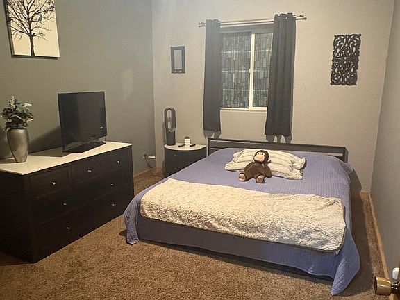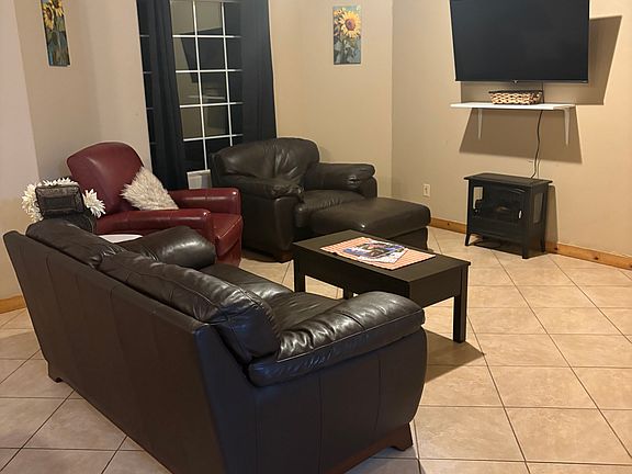 Fully furnished basement unit with garden views from large living room picture windows. Located in the Willowstone neighborhood in Gypsum. Laundry on site. Off-street parking for one vehicle. One of the bedrooms has a king bed and a walk-in closet. The other bedroom has a queen bed and a walk-in closet. The third bedroom has a ping pong table in it currently, but it can be converted to another bedroom or office. Tile and carpet floors. Small summer garden space available. Access to the backyard is available. All utilities included, as well as wifi.