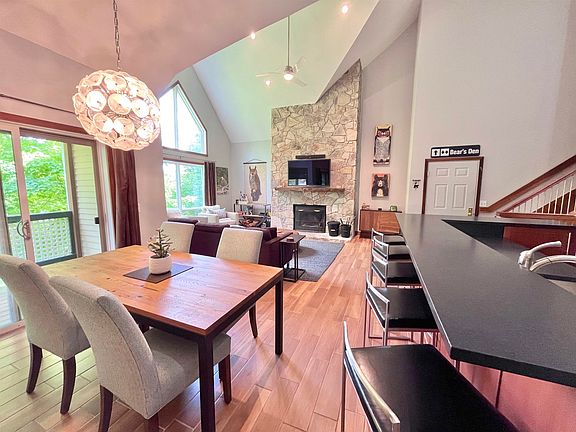 This beautifully updated 4 bedroom, 4 bath Seasons on Mount Snow condo could be your personal base lodge! With ski on, ski off trails within the development, it's the perfect location to enjoy true trailside living. This well appointed, turnkey unit offers a contemporary, yet rustic mountain vibe, featuring an open concept kitchen, living, dining area; cathedral ceiling and a field stone wood burning fireplace for après ski hangs. The main level features 3 bedrooms, including a private primary suite, and an additional bedroom with an en-suite bath. Upstairs, there is another bedroom with a bathroom and a large storage closet. On-site amenities include a recently renovated and expanded clubhouse with an indoor pool, locker rooms, saunas, owner hot tubs, owner lounge, game room, exercise room, summer outdoor pool, tennis courts, a multi-use court, 2 large grills & a firepit. Set yourself up for the ski season now with this amazing location, development and updated unit!