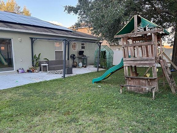 Immaculate move-in ready home with open floor plan and plenty of character! Features solar panels and a new water heater, for energy efficiency. Archways lead from the foyer to the living/dining combo, kitchen, and master suite. Beautiful 18” tile in living areas and rich Pergo laminate in all 4 bedrooms. Open kitchen with newer stainless steel appliances and spacious dinette. Large family room opens to 11x30 patio and a fully fenced backyard, perfect for entertaining. Master suite includes an adjacent room ideal for an office, nursery, or gym. Conveniently located near shopping, Hwy 27 and I-4. Schedule your showing today!