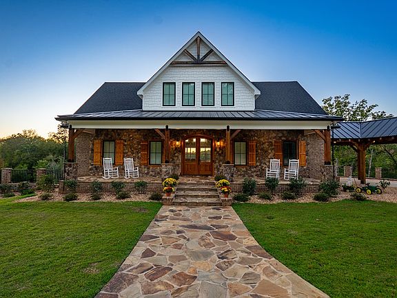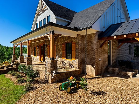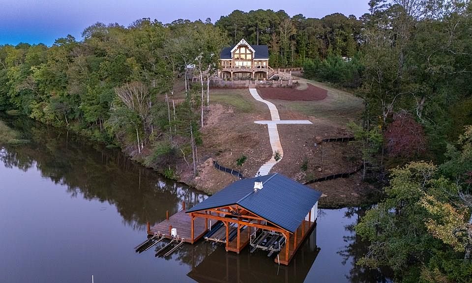 ultimate entertaining environment. Enjoy comfort and craftsmanship, from the live-edge cedar mantle to the stone-accented back deck with a gas firepit, bar area, and 98” outdoor TV. The custom kitchen boasts a 5'x7' hickory island with seating for four, quartzite countertops, farmhouse sink, commercial-grade Frigidaire refrigerator/freezer, Schott range with vent hood, built-in microwave, LG dishwasher, ice maker, and double built-in trash bins. A pass-through window connects to the dining room, while the walk-in pantry with barn doors, cedar shelving, and walls adds both function and beauty. The main-level owner's suite is a peaceful retreat, featuring quartzite countertops, double vanity, large walk-in closet, and a spa-inspired tiled shower. A loft-style office above provides inspiring lake views. Downstairs, enjoy 10-foot ceilings, three spacious bedrooms, and two full baths — including a double-vanity suite and tub/shower combo bath. Laundry hookup, hickory floors, tile baths, wood ceilings, and a stone fireplace make this level ideal for guests or multi-generational living. The Upstairs patio overlooks the pool area and contains a large 98” TV that lets down, gas fire-pit, Quartzite bar area, and surround sound. The outdoor entertainment continues with a fold-down TV, stone patio, and concrete steps leading to your private dock and a future-ready 16'x35' gazebo/fire pit area. Step outside to discover your personal paradise Step outside to discover your personal paradise — a fenced, custom in-ground granite saltwater pool with hot tub, stone slide, and waterfall feature surrounded by lush, irrigated landscaping. Add in the tanning ledge, splash pad, and outdoor shower. Stroll down to the 32'x27.5' timber-frame boathouse that includes a 16'x20' open deck, two covered HydroHoist boat lifts (fishing & pontoon), 2-HydroHoist jet ski lifts, and a 4'x12' storage room. Additional Highlights Three-car detached garage with studio apartment above.