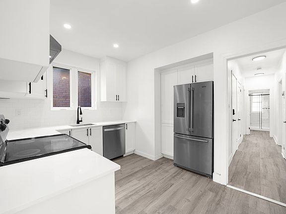 Flooded with natural light from large windows, each room features brand-new vinyl flooring, a modern, clean aesthetic, and thoughtful layouts. The home includes a brand-new chef-style kitchen with stainless steel appliances, dishwasher, and quartz countertops. The apartment also features a beautiful brand-new bathroom that adds luxury and convenience.