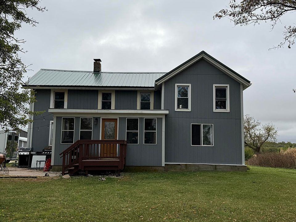 Large farmhouse close to Hampshire. Chicken coop and shed on property. Large yard which requires mowing. Natural gas high efficiency furnace and well and septic. Washer and dryer included. Tenant pays own utilities.
