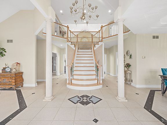 Grand 5 bedroom, 4 1/2 bath 2 story with a 6 car garage situated on a 2 acre lot in Burlington Hills subdivision. Elegant entry, flooded with light features split staircase. Perfect home for entertaining has large dining & living rooms & main floor office/bedroom. Kitchen has two-toned cabinets, upgraded commercial appliances, granite countertops, beautiful backsplash, Swarovski crystal pendant lights & moveable granite table, all newer. Solarium sun room & stunning family room w/ 2 story palladium windows flanking the stone fireplace all open concept. Master bedroom has hardwood flooring with see-thru corner fireplace into luxurious master bath with new quartz vanity top. Lower walk-out basement has kitchenette, bedroom, family theatre area, hot tub, exercise room and 2 full bathrooms one of which has a steam shower. Enjoy fabulous sunsets from the backyard which features an "L"- shaped in-ground pool and maintenance free Trex deck.