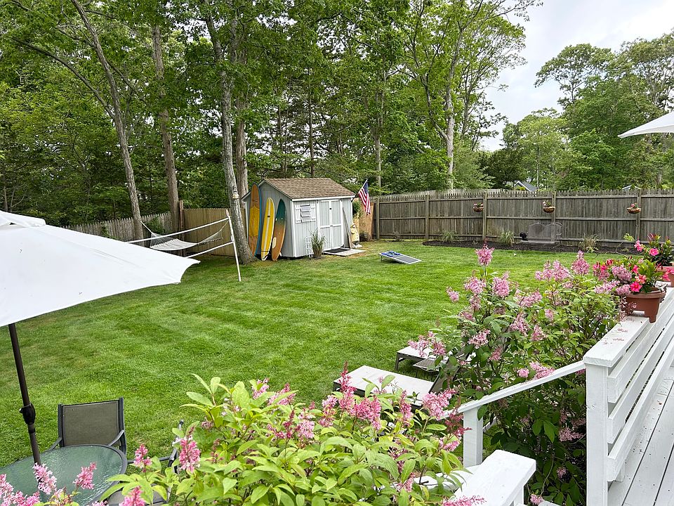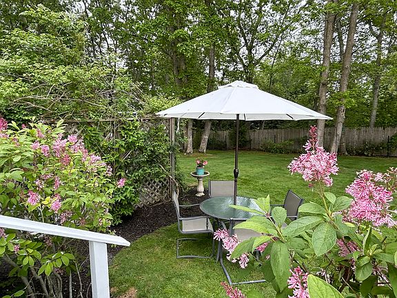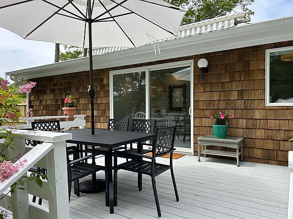 Conveniently located near Tiana Bay and Dune Road Beaches, this property is a perfect summer escape. Located steps from Tiana Bay this newly renovated cedar shake home is pet friendly and features cold crisp central air conditioning and all new modern amenities. Its serene, enchanting setting will relax your soul, offering three bedrooms in total, it enjoys a Master Ensuite with King Bed, TV and a master bathroom featuring a dual head shower and large vanity sink. The living room features a large 65" TV and an attractive wood burning fireplace that's perfect to cozy up to on those chilly nights. The gourmet kitchen features high end stainless appliances, honed Carrara marble throughout and a large Saarinen dining table with seating for six. The two additional bedrooms feature a Queen Bed with TV and a Twin Bunk Bed with TV respectively. The Marble Guest Bathroom features Bathtub/Shower and large vanity. Artsy attributes are appreciated throughout with an eclectic mix of seaside chic and midcentury modern design touches. This home is beautifully sited on very private generous acreage with a specially fenced off dog run area for your pet's convenience. Rear and front yards are replete with glorious gardens and old growth specimen trees. The ever so popular six-person Hot Tub and the Fire Pit seating area is enveloped by beautiful flowering vines offering great privacy. This retreat-like property offers ample outdoor treasures including the two person Hammock that's perfect for an afternoon nap. There are multiple seating areas for dining or lounging and full stocked with outdoor games and activities for after the beach