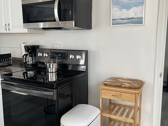 The Living room has a 50-inch TV and high-speed internet service. The bathroom has a newly tiled shower stall with radiant heated floors.