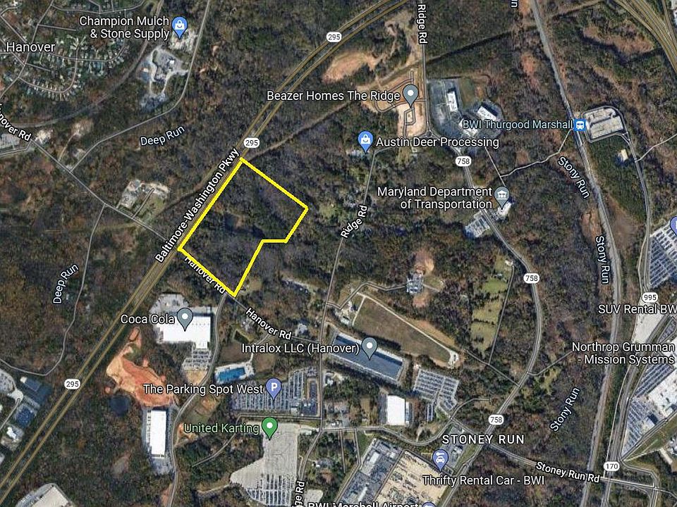 35 acres raw land. Zoned W-1 (industrial Park District). Utilities to site (Public water where Preston Gateway Dr. intersects Hanover Rd; sanitary sewer within existing ROW along Hanover Rd). There are two ponds on the property as well as wetlands- roughly half of the property is developable. MSHA has planned an interchange on/off MD-295 at Hanover Rd; the construction date is unknown. Potential uses include: airport parking ,light manufacturing, distribution, fabrication and assembly uses, hotel, laboratory/R&D, showroom, general warehousing and storage, business complexes. Well-located in close proximity to BWI Airport. Please contact brokers for more information.