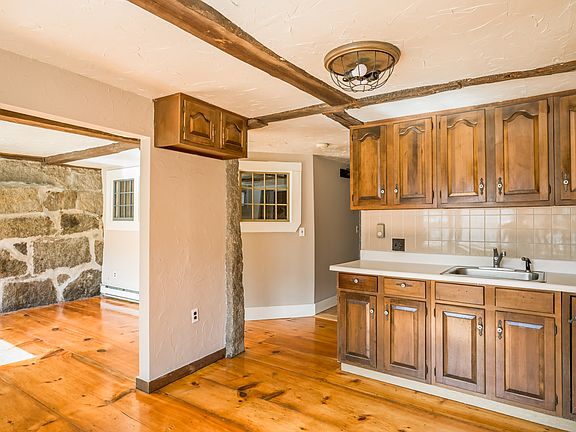 When this place was renovated, all the antique wide board pine floors were kept. The post and beams were left exposed. Eat in kitchen. Recently renovated bathroom. Large walk in bedroom closet. Everything is up to date. 10 feet from your back door is a coin op washer and dryer. Lots of sunshine.