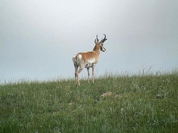 As a largely unbroken tract of land about 9 miles by 4 miles, Happy Jack Ranch is frequented by herds of mule deer and antelope, and migrating waterfowl are attracted to its numerous ponds. Elk and moose may also be sighted occasionally and a variety of small game. Lake fishing is popular at nearby Granite Springs and Crystal Lake Reservoirs, and some of the water sources on the ranch could be developed into trout ponds as well.