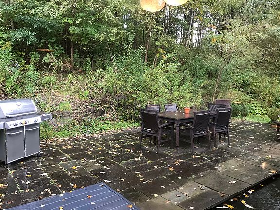 Set on a gentle hillside 9 miles outside Cooperstown, this luxuriously renovated 3 BR/2BA log home provides a gracious setting for enjoying the Cooperstown area in supreme comfort. A wide front porch looks out over a large front lawn and mountain views while a private bluestone patio with a Weber grill and water feature pond invites entertaining and relaxation outdoors.