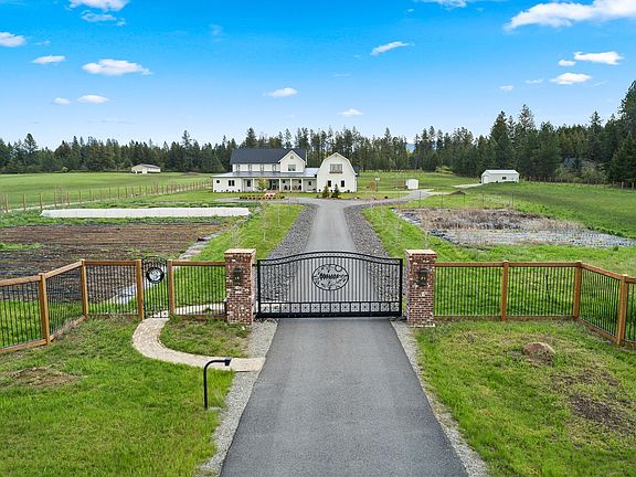 Talk about your own private Idaho! Available for a Month-to Month lease. This executive "Modern Farmhouse" located in the highly desired Rimrock Meadows Estates, a gated community. Enjoy the beautiful winters of Idaho skiing with only a short drive to Schweitzer Mountain Resort located in Sandpoint or the gorgeous summers boating or fishing the nearby Hayden Lake and Lake Coeur d'Alene. Great horse potential, as this home is situated on 10 acres and backs up to the English Point trails with 300 acres of walking and riding trails winding through large trees near the shores of Hayden Lake. This two story, 5Bd/4.5 Ba home boasts a Chef's dream kitchen with large island, guest quarters, a laundry room on both floors, 24x30 heated shop and a large 3 car garage. Enjoy the beautiful sunrises and sunsets of Idaho from the covered decking that surrounds this estate on both the front and back of the home. Large garden area and large chicken coup with hen house. You really must see this home to appreciate all it has to offer. Home is unfurnished.