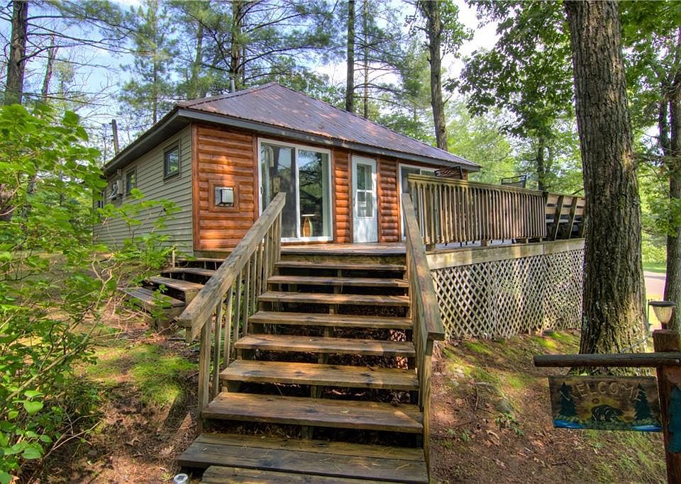 A classic cabin-condo located on picturesque Williams Bay on Grindstone Lake. This is your ideal place to enjoy cabin and lake life. "Turn Key" 3 season cabin can be your hideaway or it has a steady rental history. Recent 2023 updates to this 3BR, 1 BA cabin include metal roof, windows, vinyl siding, kitchen upgrades. Gas fireplace and 2 sets of sliding glass doors to a large deck give this cabin nice lake views from the kitchen and living room. Enjoy the wide open space in this parklike setting which includes a playground, area for boat/trailer storage and a private boat landing. Sit out on the large lake view deck or enjoy s?mores at your own private fire pit. A number of the cabins in this association have been made into year round properties. Take advantage of having your own dock or venture out on easy access to ATV/UTV trails from Williams Rd.