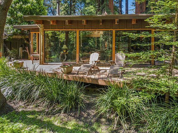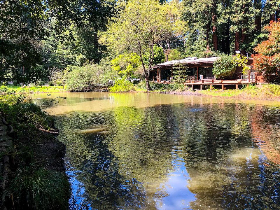 Located on 4.6+ acres in the Corralitos hills just 5 miles from the market, with Redwoods and a large, thriving Koi pond. This 2,800+ foot home lives like a 4 bedroom, but the county shows it as a 2 BR. It has an incredible master bath, with 2 more full baths. The master suite has a sitting room w/propane fireplace, a raised bed dais looking out 8' sliding doors to the expansive Koi pond, and a sumptuous bath area. The open living area has a library w/wood stove, an intimate fireside lounge w/stone fireplace & a spacious dining area. Up just 4 steps to the chefs kitchen, or down the hall to the bedroom wing & access to the furnished wine cellar w/bar sink + refrigerator. Owner seeks buyer w/energy, time and finances to maintain & improve property. Must respect redwoods. Wildlife, many birds, ducks, turkeys a peacock, skunks, raccoons, and many more. Very large pond has many Koi who cant be w/other fish as they will kill or harm the Koi. Pond is also home to turtles and mallards.