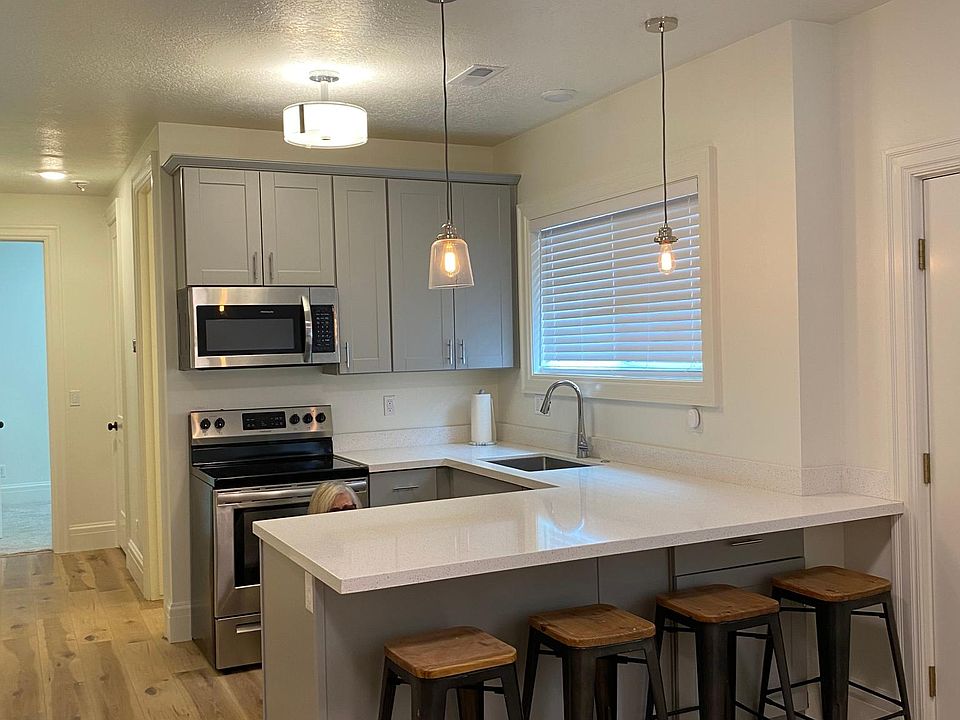875sqft basement apartment with private entrance - 2 Bedroom, 2 Bath plus an additional office, pantry, and 2-car garage. All utilities included in price. Built in 2022 with nice finishes on east side of Heber City. This is a basement apartment with stairs to the unit; separate entrance and lots of privacy in a quiet neighborhood. Private garage parking fits 2 standard vehicles. Clothes washer and dryer in unit. Located in safe and desirable neighborhood with walking trails and parks. Background check required and must be spotless. No smokers or cats/dogs permitted. Tenant responsible for snow removal on stairs to their unit. Heat, water, gas, electricity, high-speed internet and parking included. If interested please e-mail number and ages of all occupants, as well as desired lease duration to arrange a tour of the apartment. Exact address will be provided upon tour arrangement. Please provide phone number in e-mail if possible or call/text for fastest response. Showings available in English or Spanish.