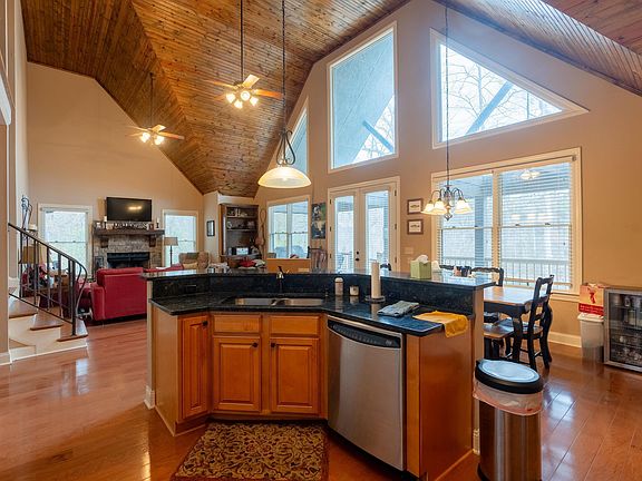Custom built home on the peaceful & serene Little Red River. Open living area that features expansive floor to ceiling windows, beautiful wood clad vaulted ceilings, & a wood burning, stone fireplace. Hardwood flooring throughout the home. The kitchen is equipped with granite counters, stainless appliances, and a breakfast bar. Large covered back deck with incredible river views! The home's three bedrooms, two full baths, and laundry room are all on the main floor. The primary suite features a vaulted ceiling and en-suite with jacuzzi tub and walk in shower. The spacious loft, off the main living area, is currently set up as a non-conforming fourth bedroom. Exterior of the home features gorgeous stone/wood construction & metal roof. HVAC May 2023. New roof, exterior paint, and gutters in 2022. Dock built in 2021 & fiber optic installed in 2022. Neighborhood amenities included gated entrance, pool, pavilion, walking trails, pond. Fully furnished excluding a few items.